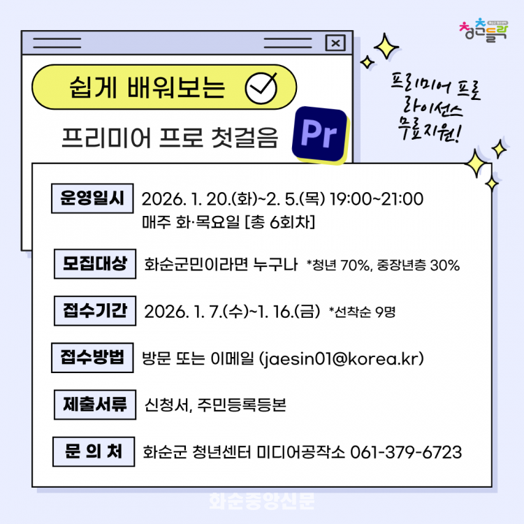 û û Բ ֹεϵ ؾ ϸ, 1 16ϱ ȭ û⼾ 湮ϰų Ȩ(https://www.hwasun.go.kr/youth) ûϸ ȴ.